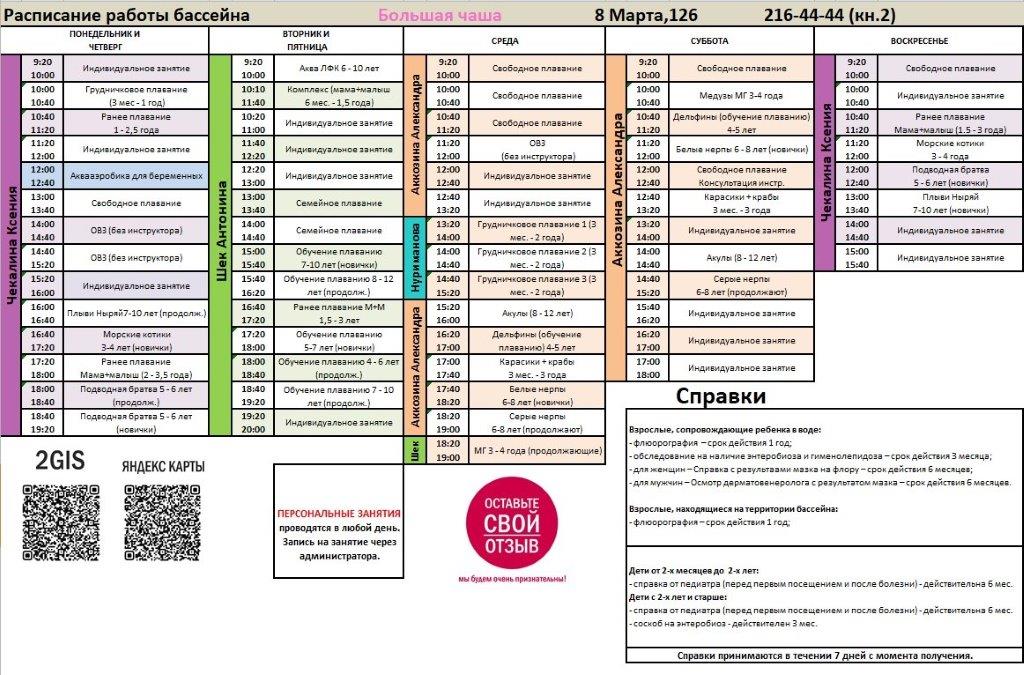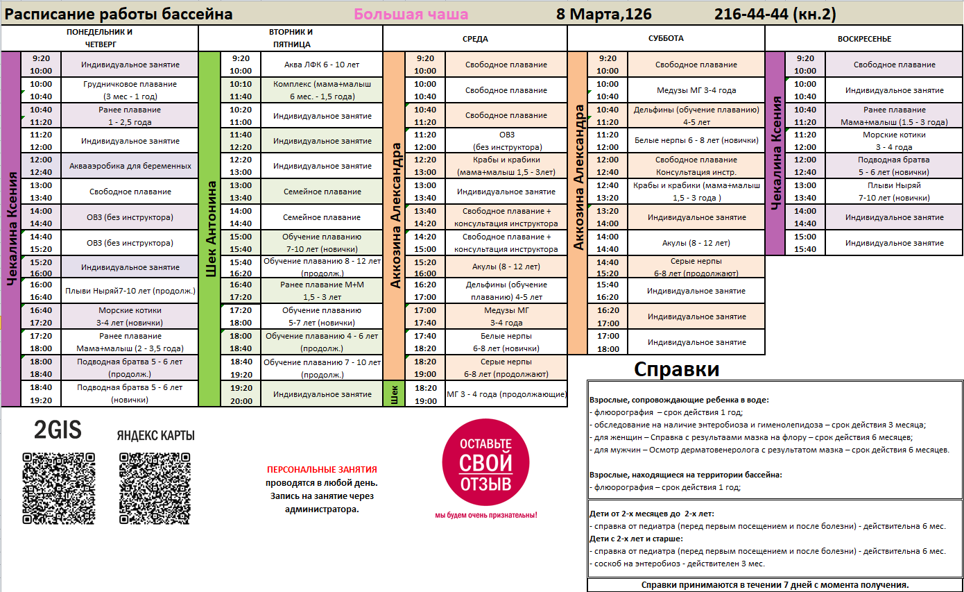 Запись на занятия и свободное/семейное плавание - обязательна.