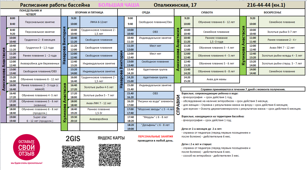 Запись на занятия и свободное/семейное плавание - обязательна.
