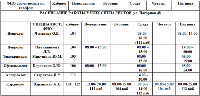 Расписание приема специалистов на Нагорной, 48 актуально на 01.09.2025
