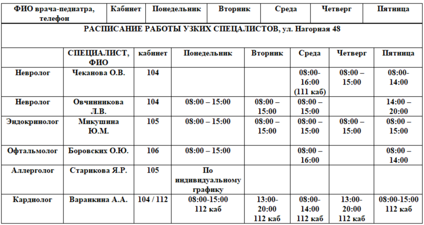 Расписание приема специалистов на Нагорной, 48 актуально на 01.12.2025