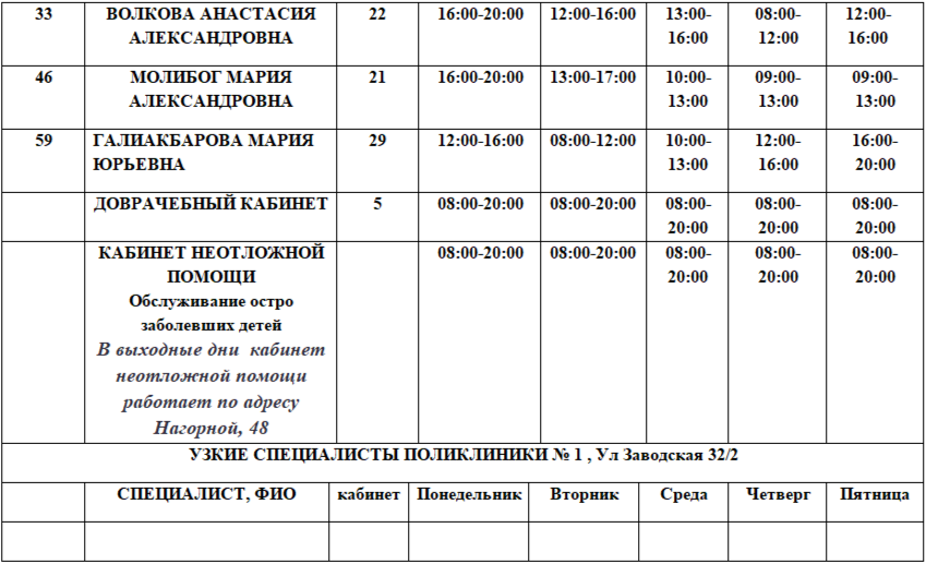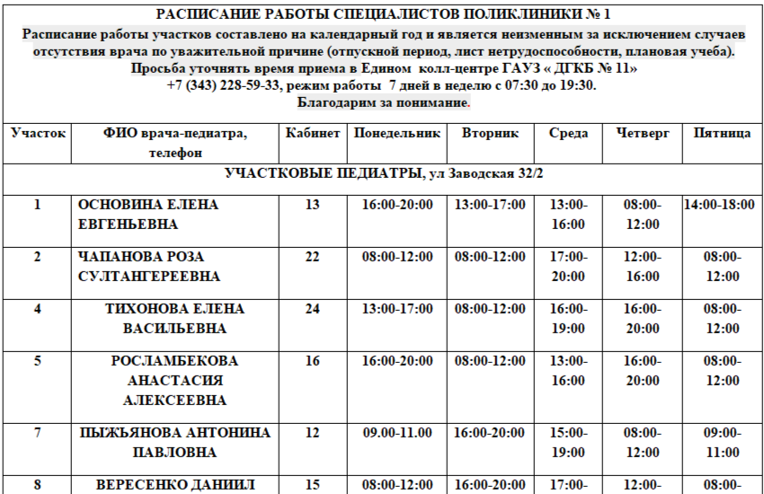 Расписание и адреса кабинетов неотложной помощи ДГКБ № 11: