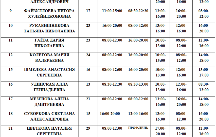 Расписание на 01.12.2025. Возможны изменения в связи с периодом отпусков, листами нетрудоспособности специалистов и прочим причинам.