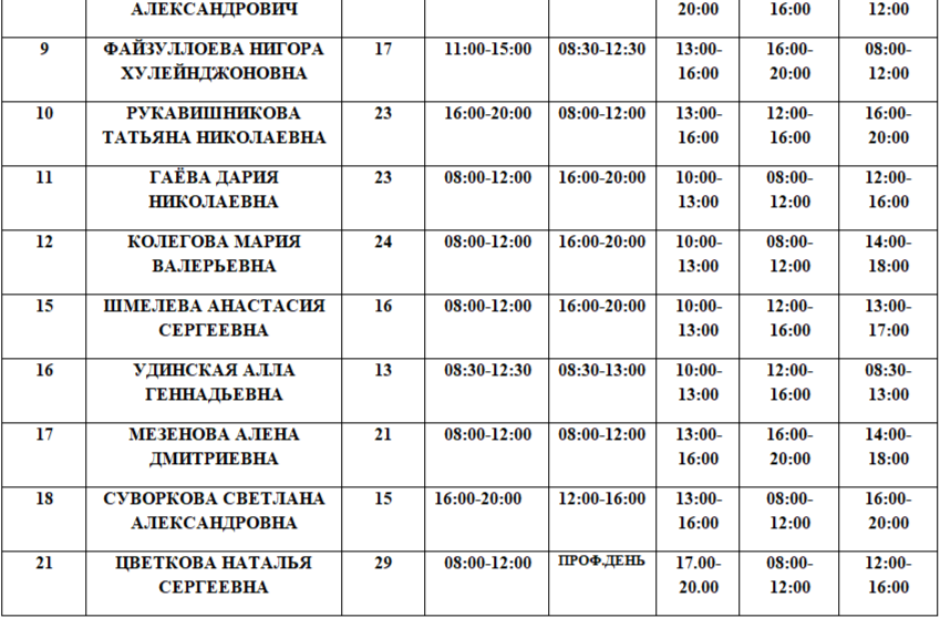 Расписание на 12.01.2026. Возможны изменения в связи с периодом отпусков, листами нетрудоспособности специалистов и прочим причинам.