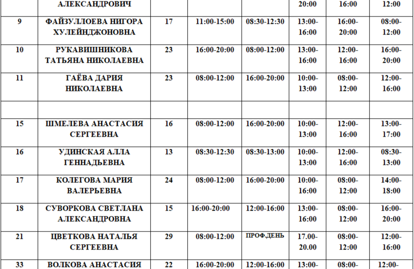 Расписание на 01.02.2026. Возможны изменения в связи с периодом отпусков, листами нетрудоспособности специалистов и прочим причинам.
