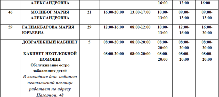 Записаться на прием к участковому педиатру можно в это время, вызвать врача на дом можно с 07:30 до 19:00.