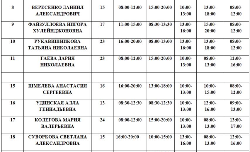 Расписание на 01.03.2026. Возможны изменения в связи с периодом отпусков, листами нетрудоспособности специалистов и прочим причинам.