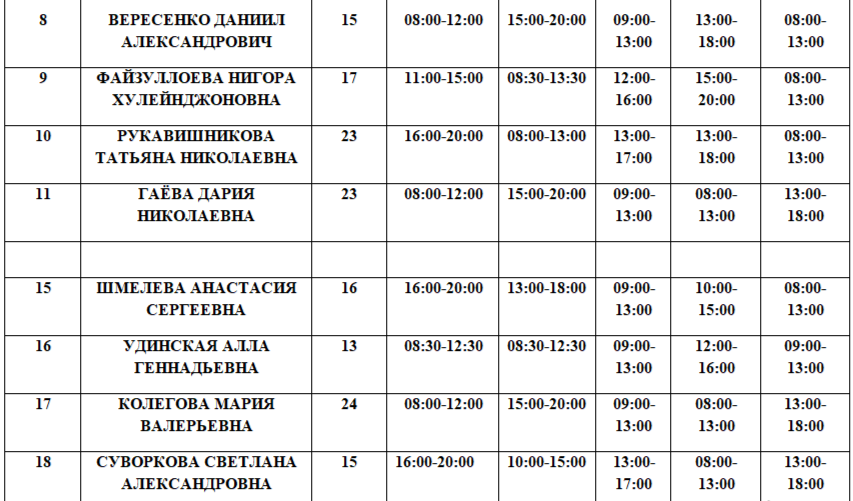 Расписание на 01.04.2026. Возможны изменения в связи с периодом отпусков, листами нетрудоспособности специалистов и прочим причинам.