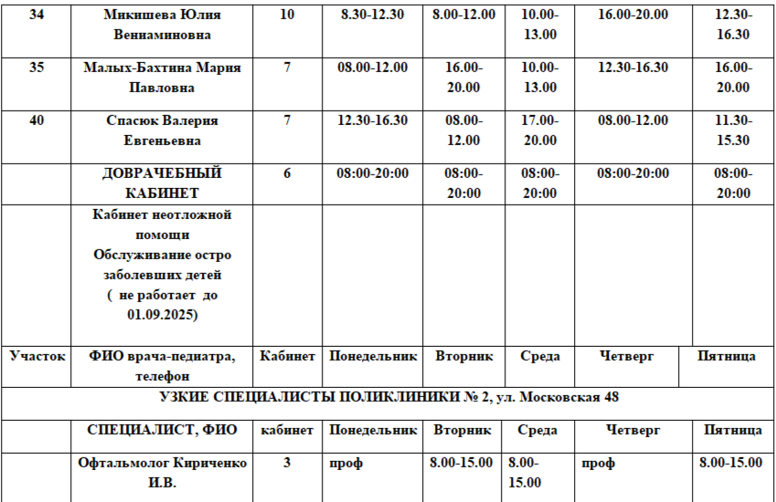 Исполняющий заведущего педиатрическим отделением поликлиникой № 2