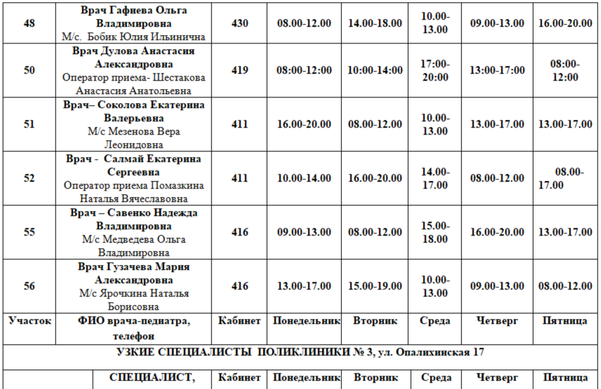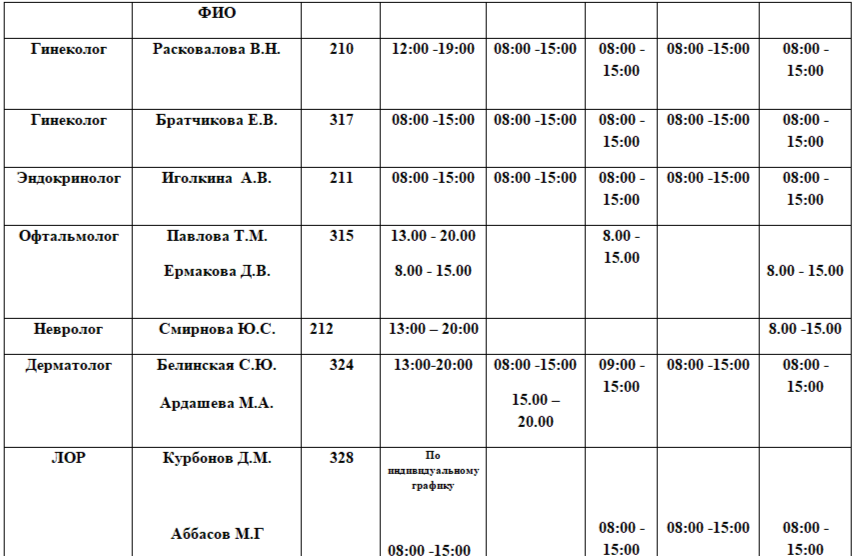 Расписание на 01.12.2025. Возможны изменения в связи с периодом отпусков, листами нетрудоспособности специалистов и прочим причинам.