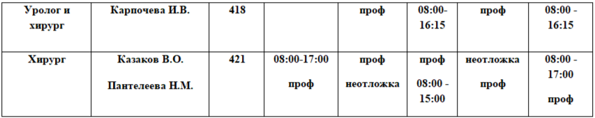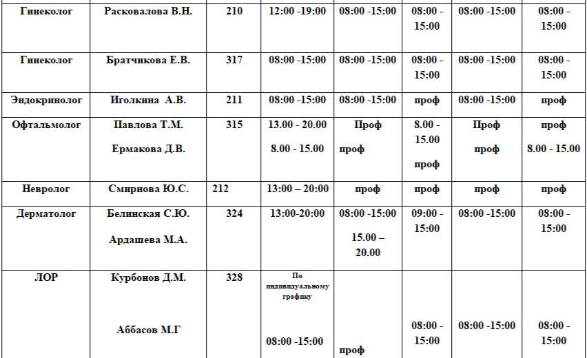 Расписание на 12.01.2026. Возможны изменения в связи с периодом отпусков, листами нетрудоспособности специалистов и прочим причинам.