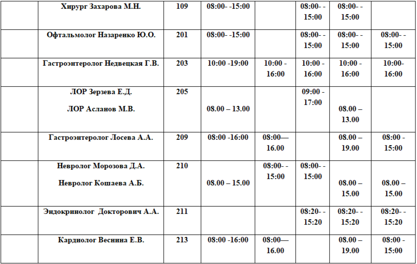 Расписание на 01.11.2025. Возможны изменения в связи с периодом отпусков, листами нетрудоспособности специалистов и прочим причинам.