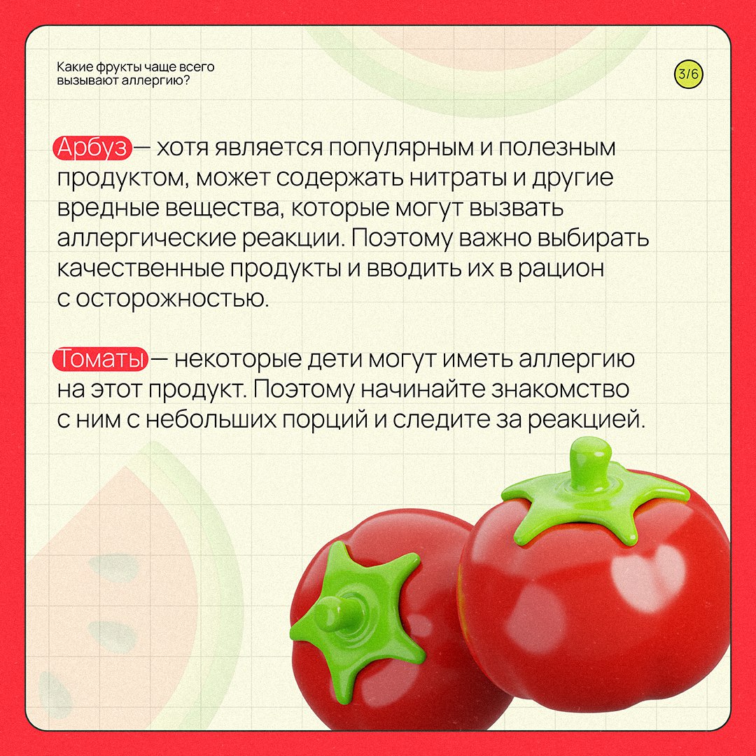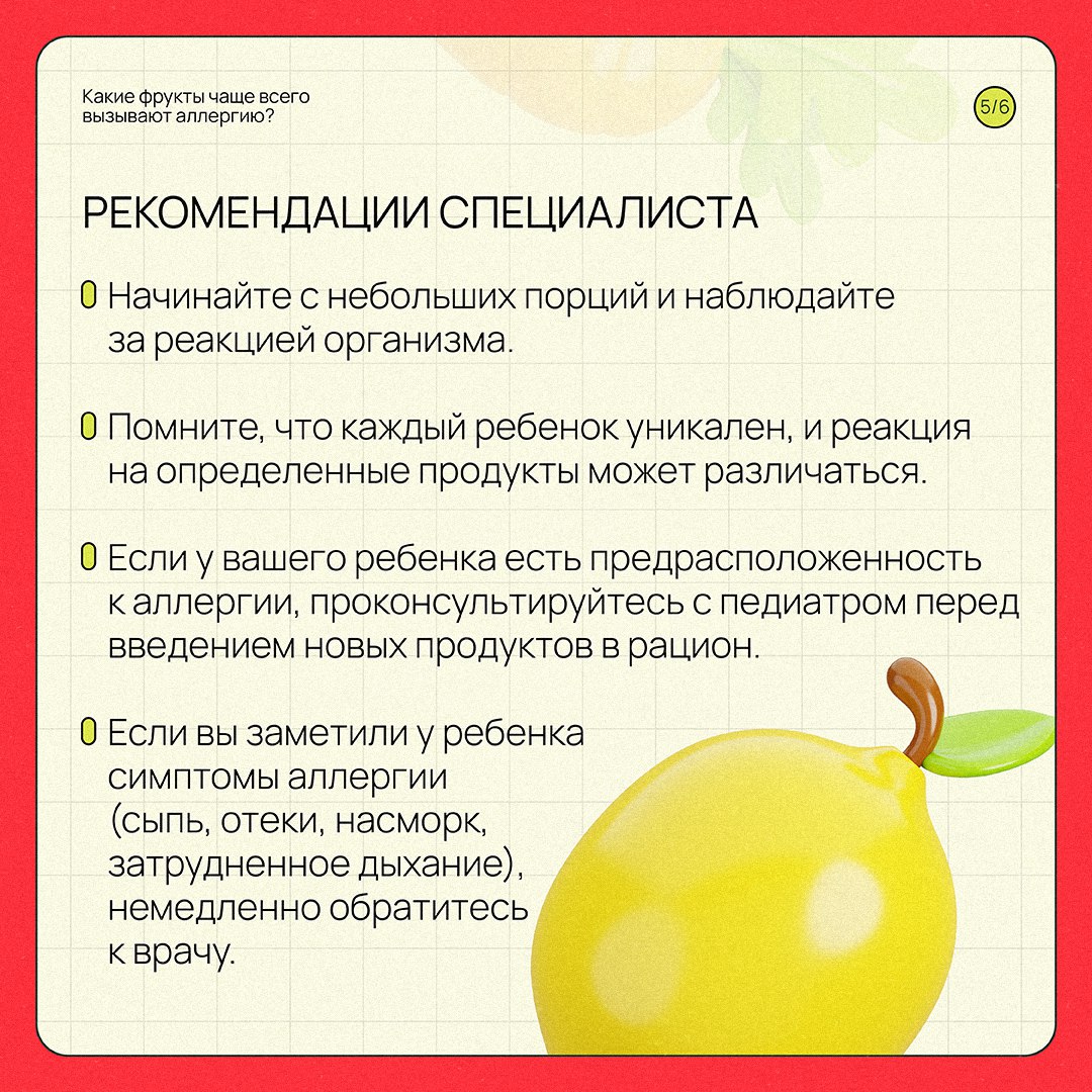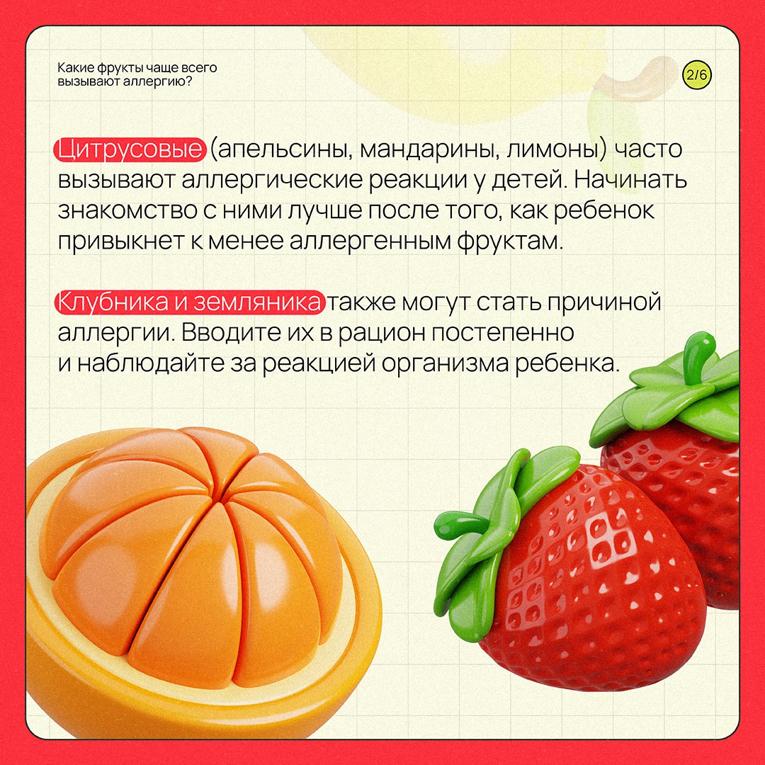 При введении новых продуктов в рацион ребенка важно учитывать риск возникновения аллергии. О самых распространенных аллергенах среди фруктов и овощей рассказал врач-педиатр Детской больницы №11 Екатеринбурга Михаил Прокопенко. Скорее листайте карточки!