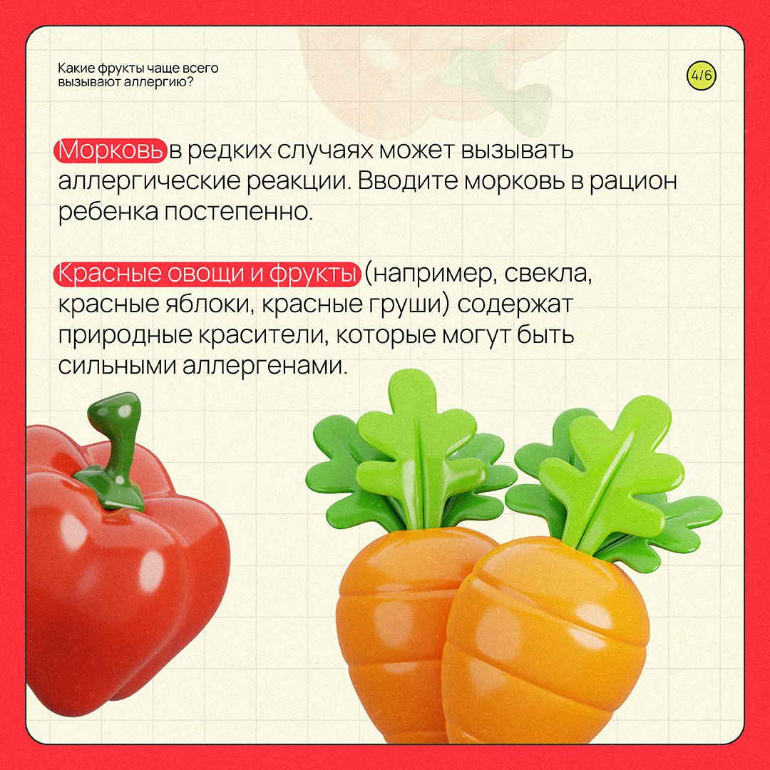 Родителям на заметку: какие фрукты и овощи чаще всего вызывают аллергию?