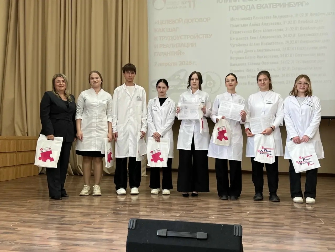 На торжественной церемонии студентам, поступившим в Свердловский областной медицинский колледж в 2025 году, вручили договоры о целевом обучении. Ключевым событием этого мероприятия стало подписание соглашений с 11 будущими специалистами, среди которых четверо действующих сотрудников Детской больницы №11. Они решили сменить немедицинскую профессию и посвятить себя лечению детей.
